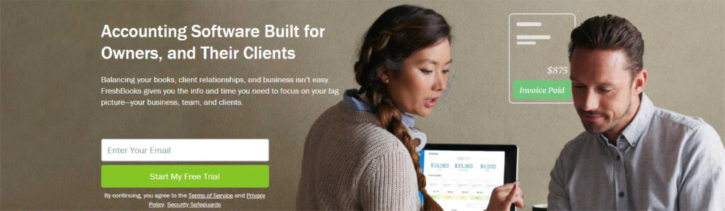 The subheadings are also significant: They encourage visitors to easily send invoices with FreshBooks, to automate time-consuming tasks, and to track their own time expenditure. In addition, it is explicitly discussed how intuitive the FreshBooks software is, which benefits freelancers and small businesses (i.e., the target group of FreshBooks).