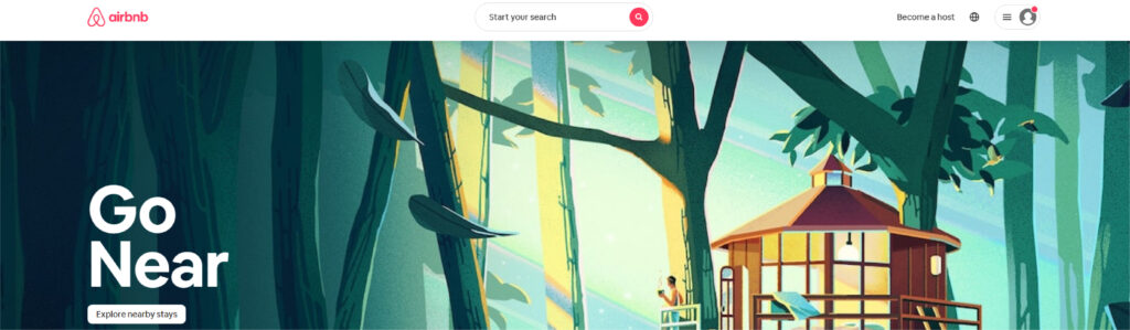 The primary call-to-action (“search”) is highlighted in color against the background. And the secondary call-to-action for hosts is also displayed in the directly visible area.