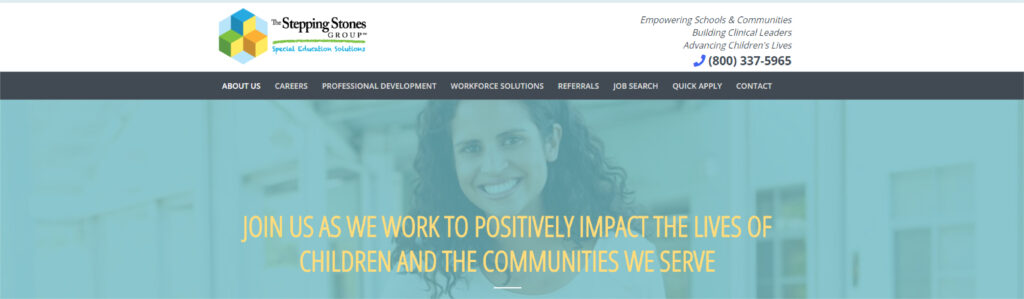 It’s hard to see in the screenshot above, but the heading rotates and is aimed at different audiences – from job seekers to people who want to find a therapist for their school.