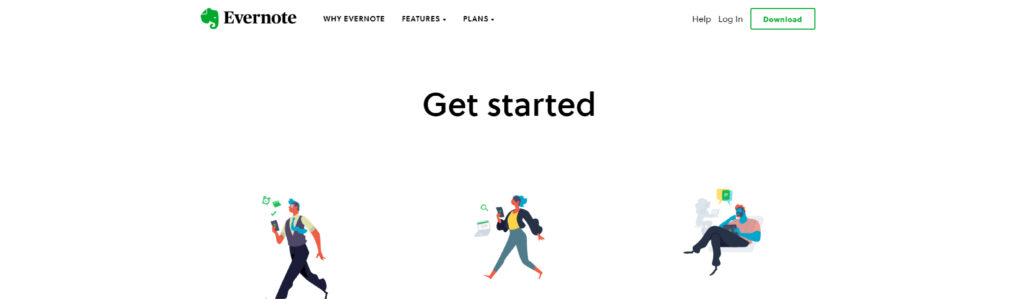 Over the years Evernote has grown from a simple note-taking app to a provider of enterprise products. Evernote does what other companies find difficult: to pack as many potential messages as possible into a few important sentences on the homepage.