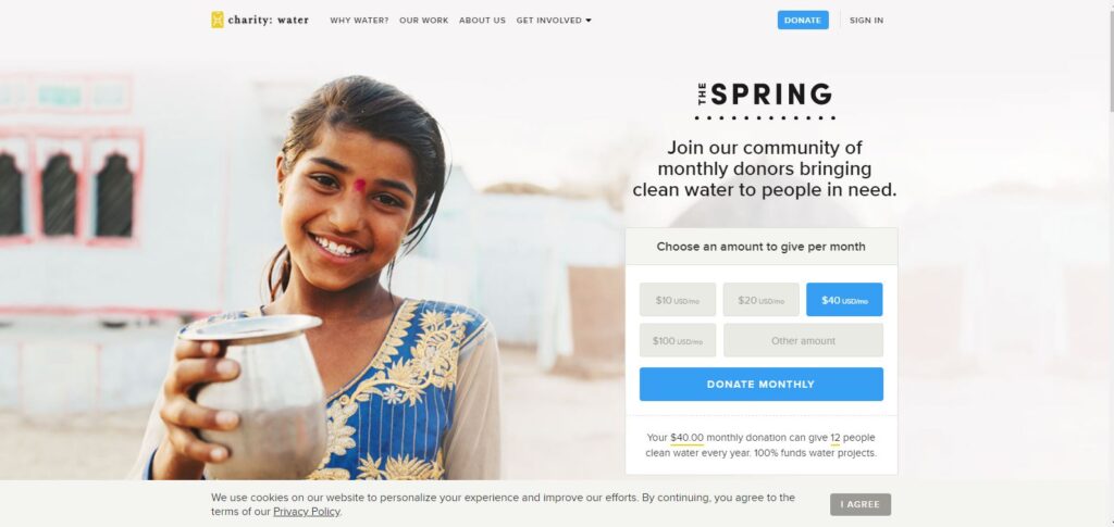This website is far from typical of a nonprofit company. Lots of visual elements, creative texts and interactive web design ensure that this website stands out from the crowd.